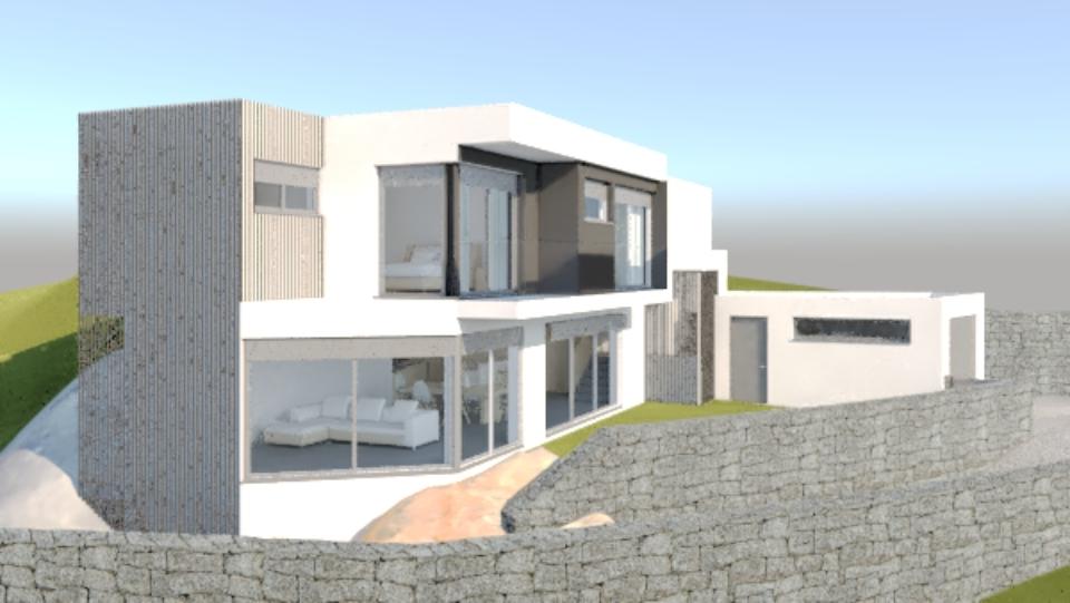 Moradia inserida na paisagem, Habitação com linhas criativas e aproveitamento de espaço incrível. A conjugação de materiais torna-a contemporânea com charme e requinte.